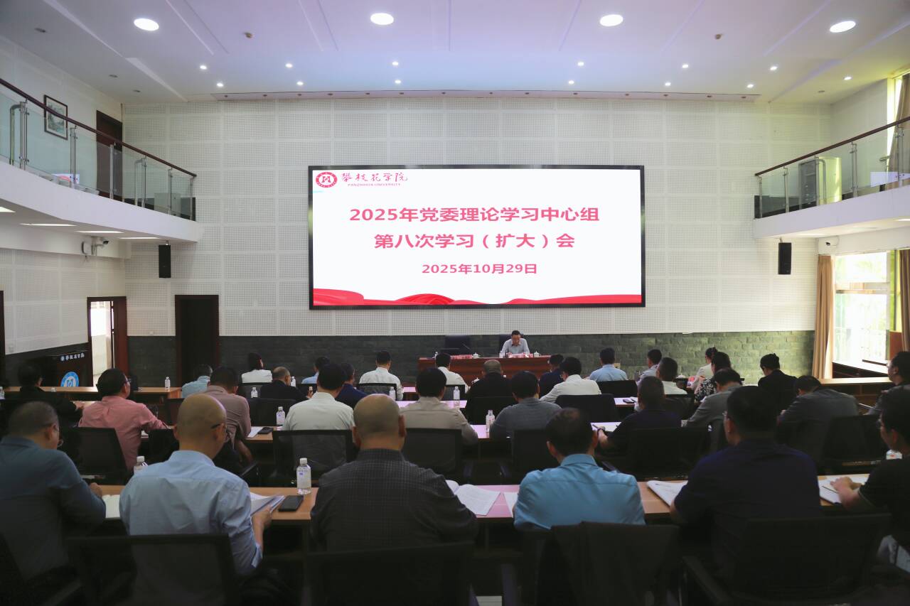 10月29日下午,学校在博雅厅召开2025年党委理论学习中心组第八次学习(扩大)会,专题传达学习党的二十届四中全会精神,深入学习研讨《习近平谈治国理政》第五卷,研究部署学校“十五五”发展规划。党委书记胥刚主持会议并讲话,在校校领导、全体中层干部参会。