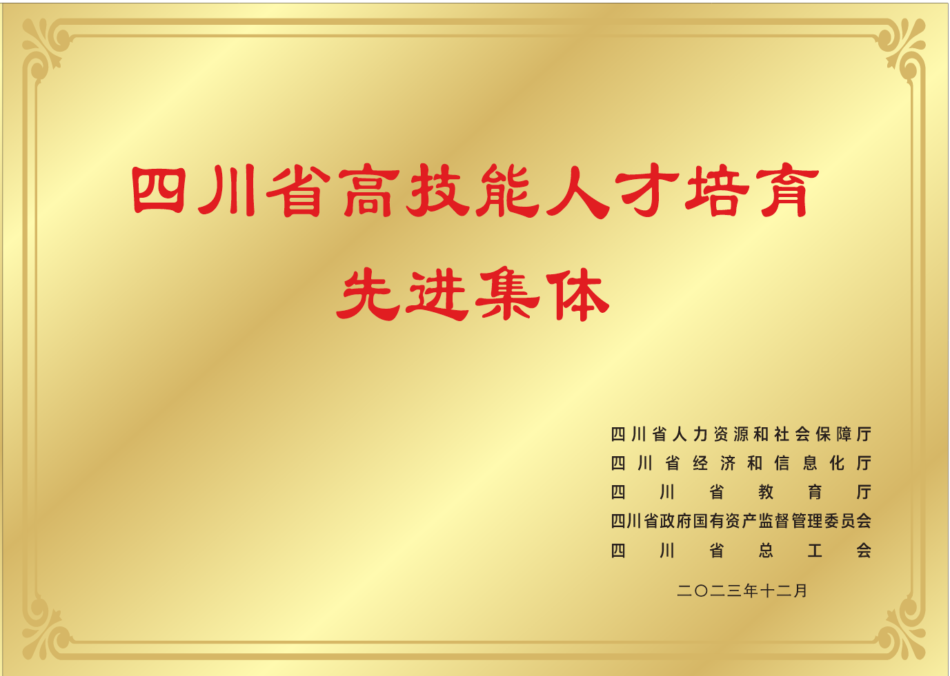 图5 荣获四川省高技能人才培育先进集体