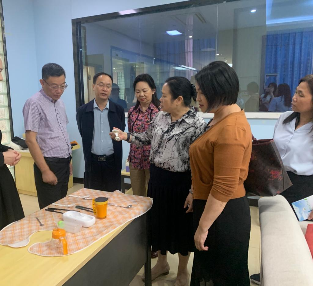 调研组一行先后参观了攀枝花康养职业技能培训基地及虚拟仿真实验教学中心,实地察看了母婴护理实训室、老年护理实训室、老年关爱室和康养研究成果展等,调研了康养学院在康养护理领域的建设发展以及推进产教融合、培养康养+专业应用人才的特色和举措。考察期间,双方围绕康养+教育培训、养老事业和康养产业高质量发展等进行了深入交流研讨。陈国凤一行对我校康养学院的办学定位、办学方向、办学特色及产学研取得的成效给予了充分肯定。