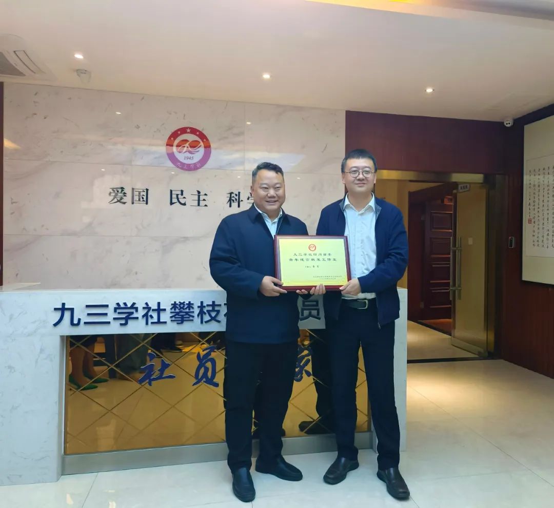 10月21日,社省委会青工委青年建言献策工作室授牌仪式在社市委会“社员之家”举行。社中央青工委副主任、社省委会青工委主任柴铁锋向九三学社攀枝花学院支社主委、社市委青年建言献策工作室主持人李军授牌。社市委副主委张林主持授牌仪式。