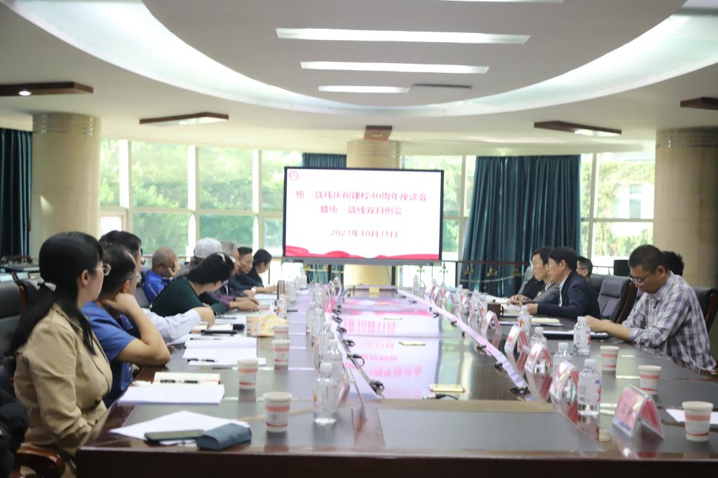10月31日,学校召开统一战线庆祝建校40周年座谈会暨统战工作双月例会。学校党委副书记刘立新出席座谈会并讲话,学校各级政协委员、人大代表,各民主党派、统战团体部分退休老同志代表,各党派和团体相关负责人、统战部全体成员参加座谈会。会议由党委常委、党委统战部部长朱云生主持。