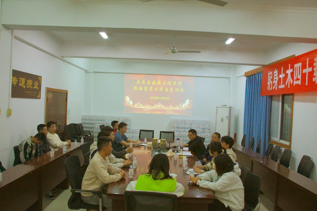 11月22日,我校土建学院召开2023年在校退伍大学生座谈会,学院23名在校退伍大学生参加座谈。土建学院党委书记张敬东、学生科副科长王宁军及辅导员代表参加会议。