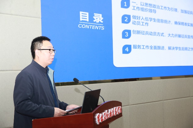 石维富强调,各级党组织要加大工作力度,加强科学统筹,进一步推动国防教育工作走深走实;各学院要认真领会学校第三次党代会精神,充分认识到做好征兵工作对学生成长成才的意义,从源头上做好宣传、征集工作;全体老师要加强对退伍复学大学生的学业指导和职业生涯规划,依托国防教育协会、国旗护卫队等平台,让军人的优良传统在校园得以持续和升华;各部门要以大德大爱大师的教育精神追求、自律自觉自强的思想行动状态,深化国防教育,细化保障服务,全面做好2024年征兵工作和退伍大学生教育管理服务工作。