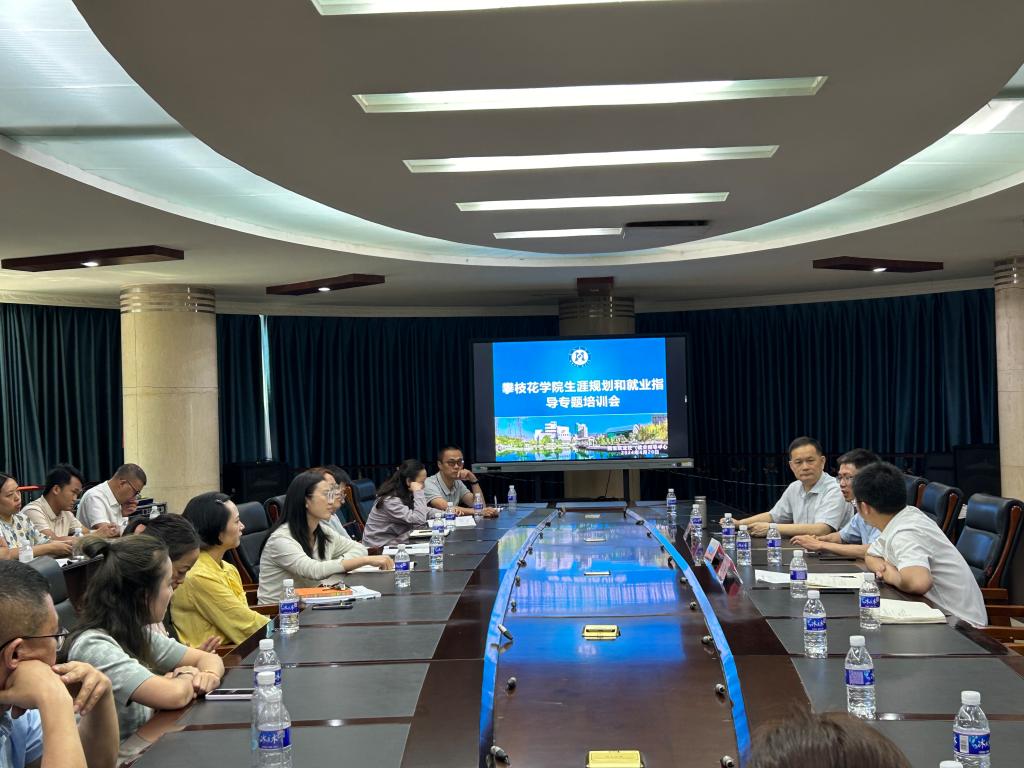 为增强大学生生涯规划意识,促进学校毕业生高质量充分就业,4月20日,招生就业处在办公楼300室开展生涯规划和就业指导专题培训会。会议特邀宜宾学院就业指导中心主任、全国生涯规划专家、全国高校毕业生基层就业卓越奖获得者夏高发做专题培训。招就处全体工作人员,学院分管就业工作领导、学生科科长以及专职辅导员等共25人参加本次培训。