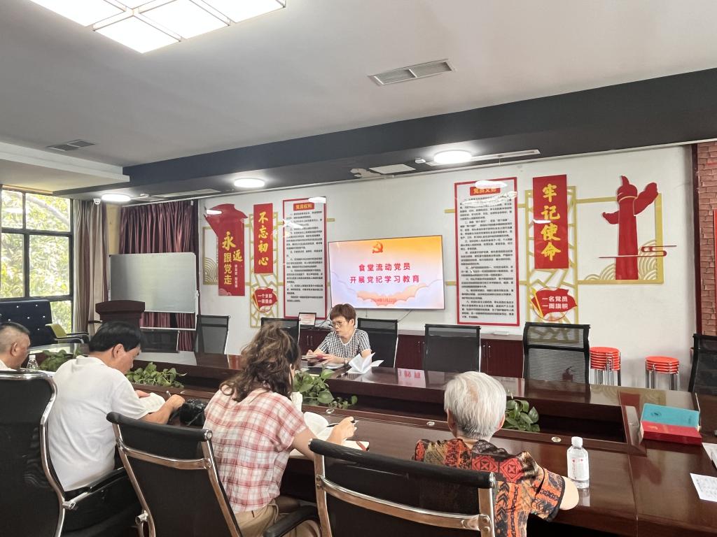 一分部署,九分落实。自党纪学习教育开展以来,后勤党总支对标对表,在“实”上下功夫。制定《后勤党总支党纪学习教育实施方案》,第一时间召开动员大会,紧扣“六大纪律”分专题深学细研,开展警示教育“三个一”活动。同时,针对食堂流动党员实际,灵活多样开展党纪学习教育,实现党纪学习教育全覆盖,扎实推动党纪学习教育走深走实。
