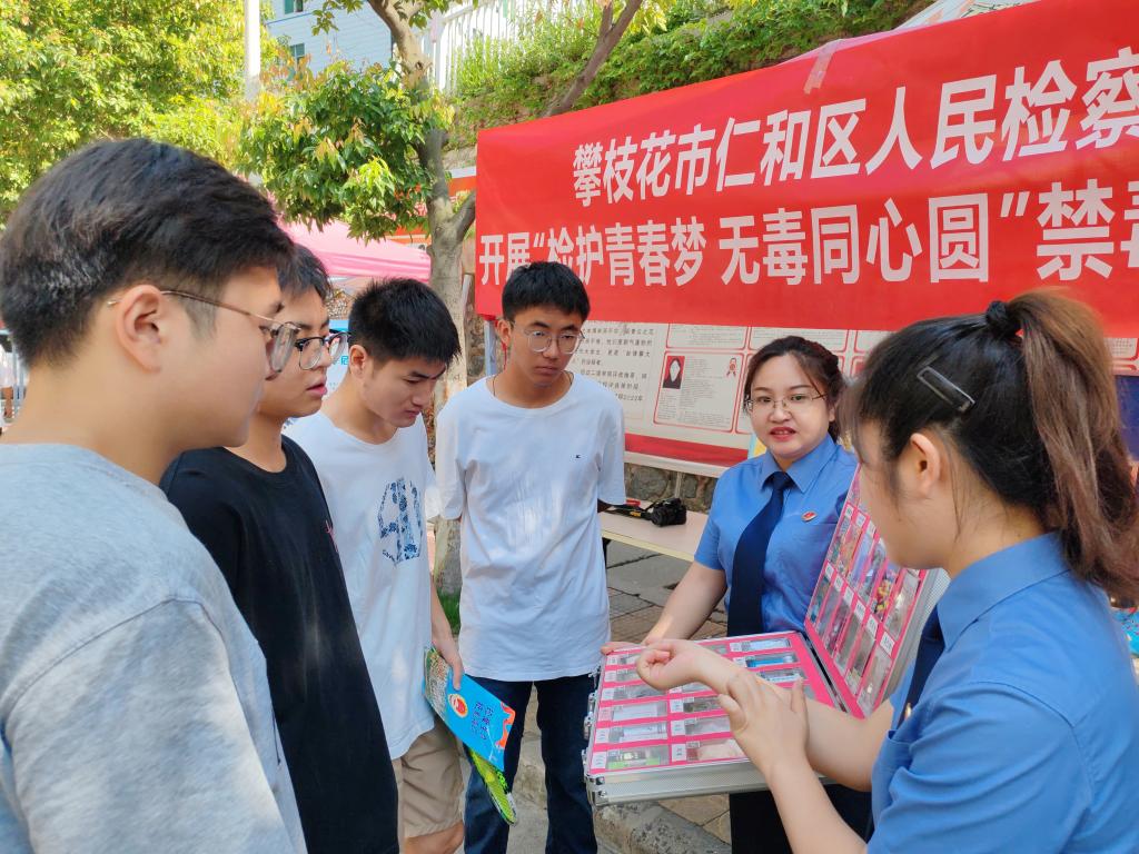 为加强青少年毒品安全教育,提高青年学生的自我保护意识。 6月19日上午,攀枝花市仁和区人民检察院走进我校开展“检护青春梦,无毒同心圆”禁毒宣传活动。
