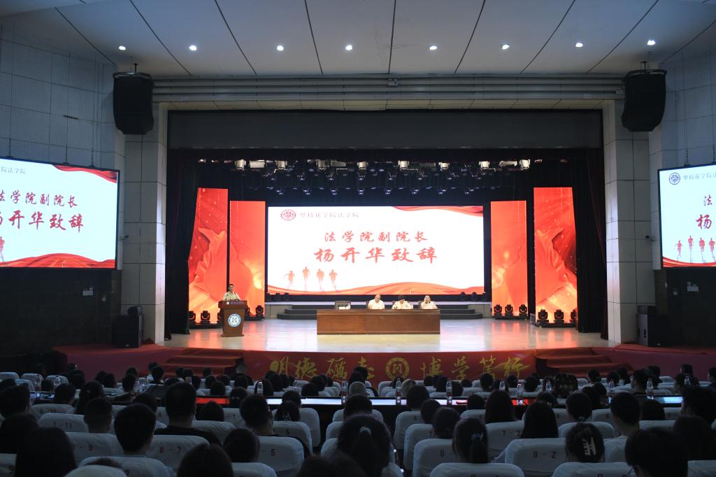 9月3日上午,法学院在学生会堂举行2024 级新生开学典礼。校党委副书记、纪委书记彭徐、学院党政领导班子、各教研室主任、各科室负责人、教师代表、家长代表和270余名新生参加典礼。典礼由学院党总支负责人张琳主持。