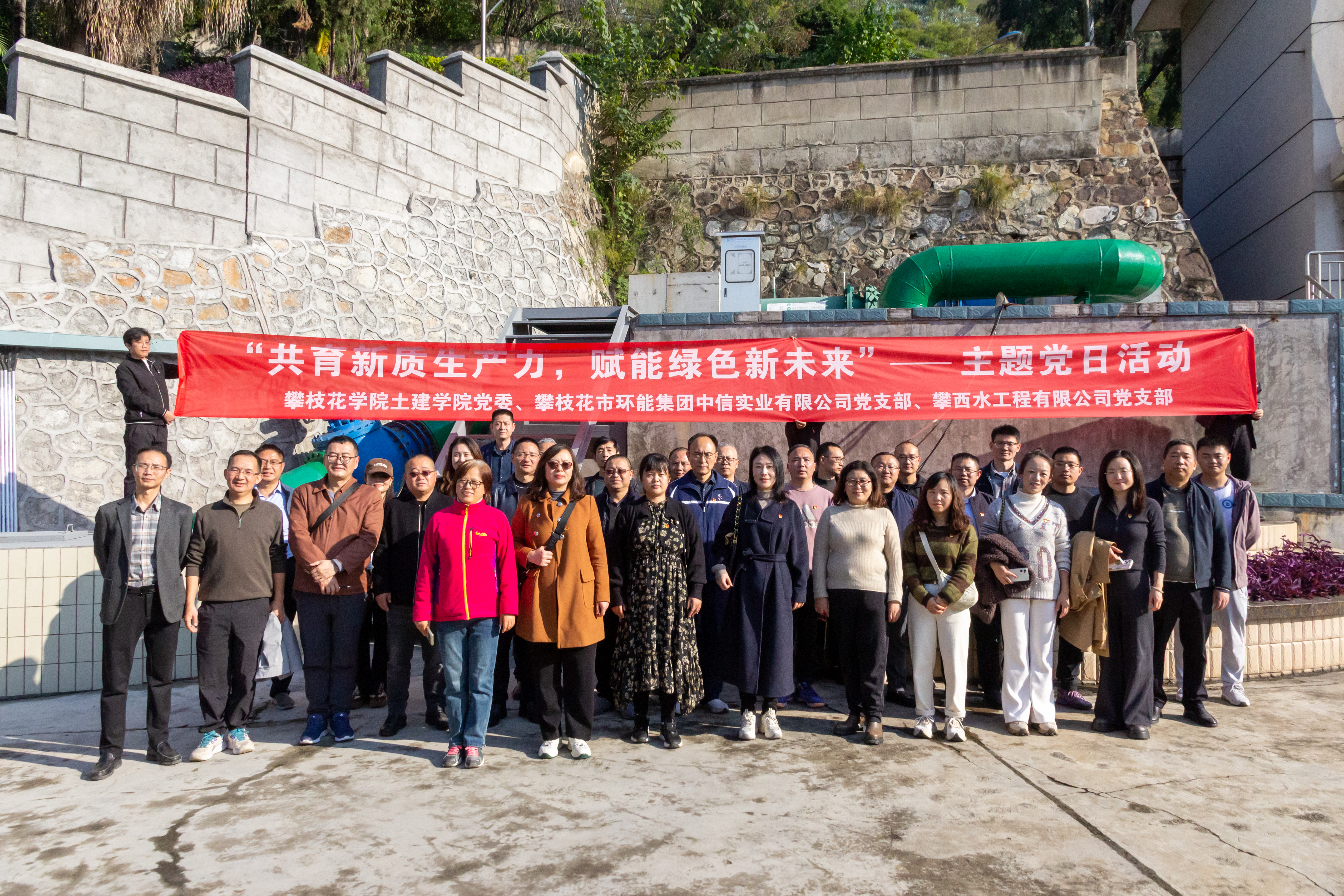 为深入学习贯彻党的二十届四中全会精神,聚焦教育科技人才一体化建设,推动学院党建工作与业务工作深度融合。11月26日下午,土建学院党委组织教师党员赴攀枝花市环能集团,与其全资子公司攀枝花市中信实业有限公司党支部、攀西水工程有限公司党支部联合开展“共育新质生产力,赋能绿色新未来”主题党日活动。土建学院领导班子成员,市环能集团党委书记、董事长李杨,市环能集团党委副书记、工会主席李付军等出席活动。