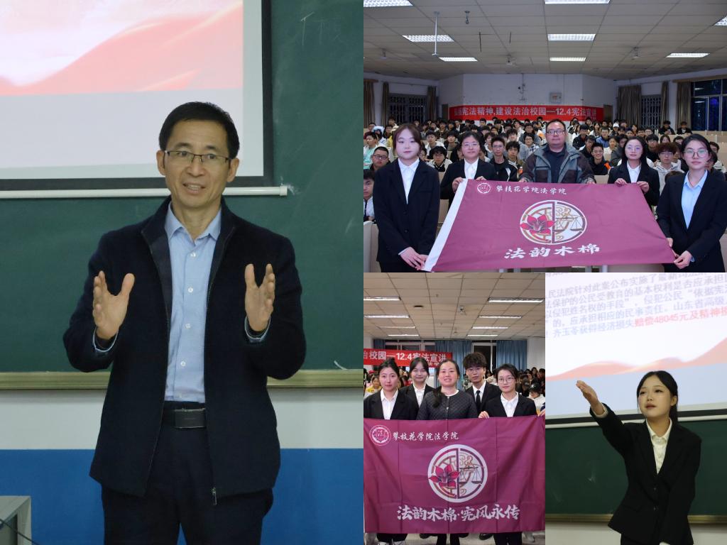 线下实践促知行合一,12月1日至8日宪法宣传周期间,学校组建15名教师、57名学生构成的专业宣讲团,为13个学院及研究生院开展了共计14场宪法巡讲;12月4日组织全校学生参与“宪法晨读”直播,在齐唱红歌、诵读宪法核心条款后,各班级开展“宪法在我身边”微讨论,实现法治教育与专业实践的有机融合。