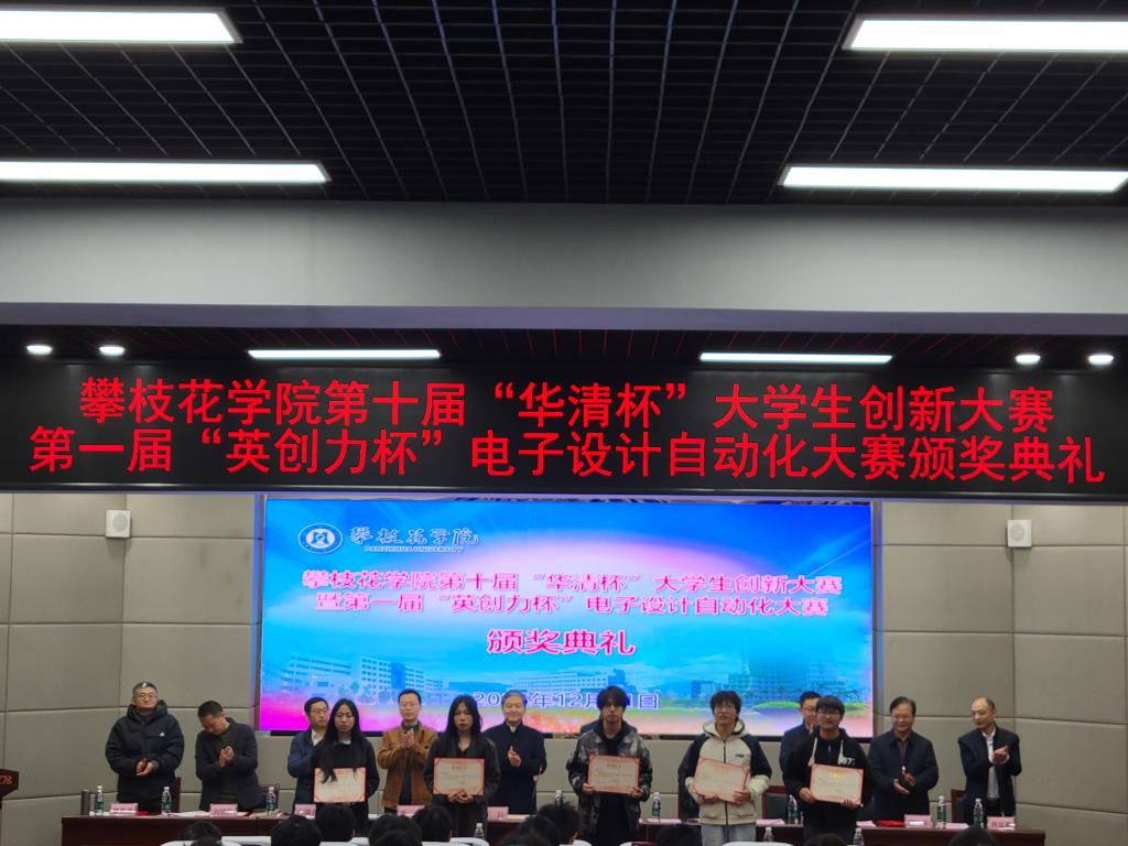 12月11日下午,我校在清风厅隆重举行第十届“华清杯”大学生创新大赛暨第一届“英创力杯”电子设计自动化大赛颁奖典礼。副校长王兵、北京华清远见科技发展有限公司副总裁陶金华、四川英创力电子科技发展有限公司鸿图电子电路技术职业学校副校长秦明,教务处、学生处相关负责人及电气信息工程学院领导班子出席典礼。典礼由电气信息工程学院院长向国齐主持,对在两场赛事中表现突出的167名同学进行了表彰。