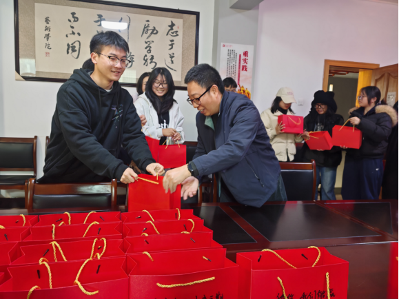 慰问相赠,点滴关怀暖人心。座谈会的最后,学院为同学们精心准备了实用又暖心的考研慰问品。老师们亲手将慰问品送到每位同学手中,沉甸甸的礼包,暖意融融的关怀,让在场学子备受感动,纷纷表示将以更加饱满的热情和坚定的决心投入到最后的复习中,不负韶华,不负期望。