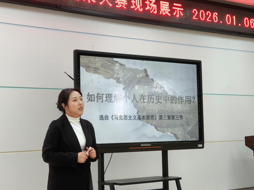 2026年1月6日,马克思主义学院青年教师教学风采大赛在学院会议室顺利举行。7位青年教师同台竞技,展示思政课教学实力,学院通过以赛促教的方式,为青年教师搭建交流提升平台。