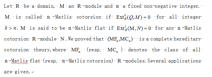 题 目:n-Matlis cotorsion modules and n-Matlisdomains